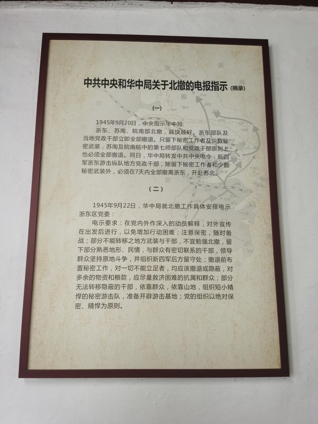 北撤旧址见证了这一伟大的历史事件,犹如一座历史的丰碑载入史册。在北撤会议旧址上建起“上虞革命史迹陈列馆”,恢复了当年北撤会议的场景,同时还展出了新民主主义革命时期上虞党组织的重要活动史料。
