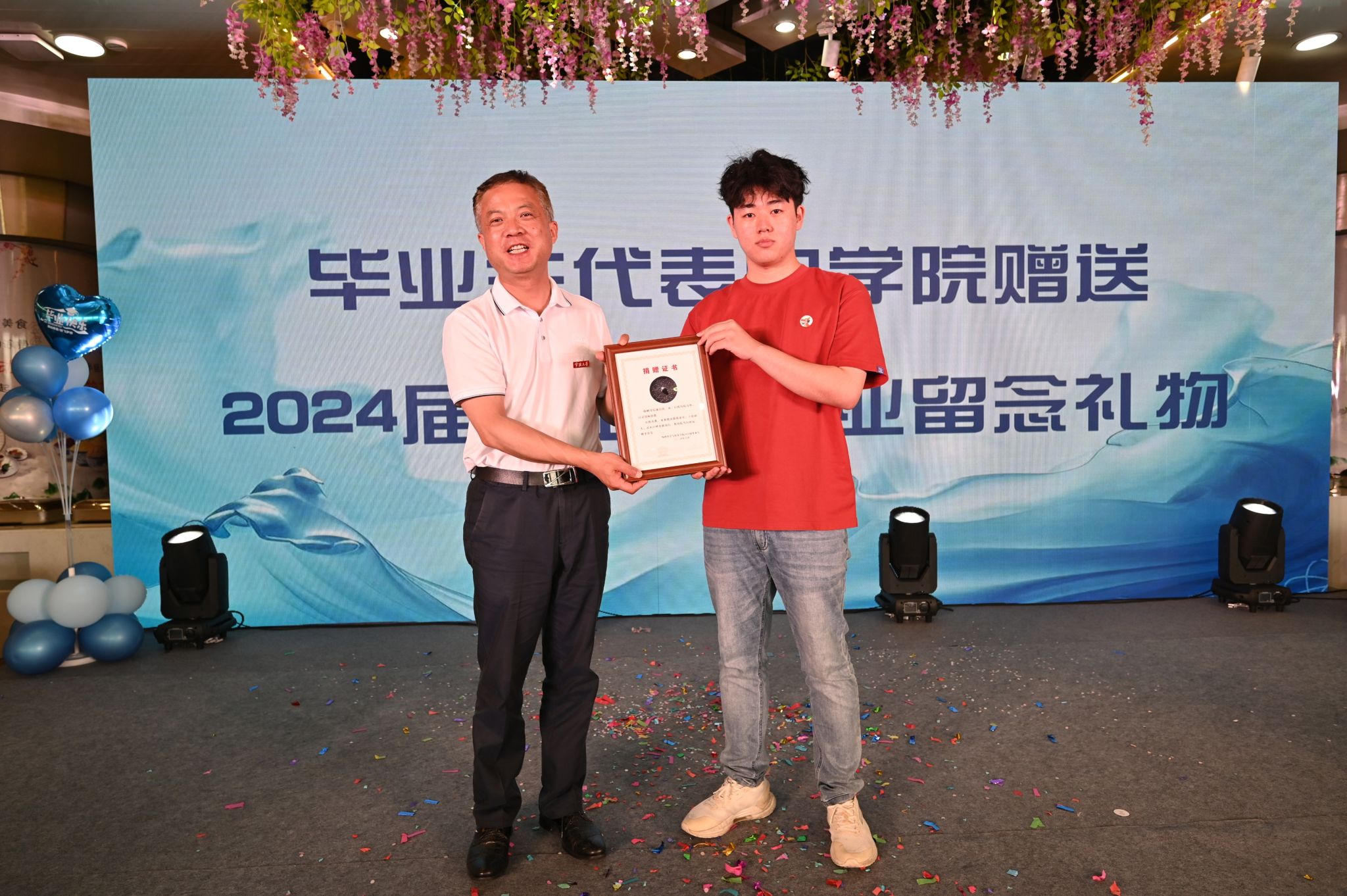 为进一步汇聚校友力量,蓄力赋能发展,欢送会上还进行了校友联络人聘任仪式,学院党委副书记刘小娣为2024届毕业校友联络人颁发聘书与纪念品。