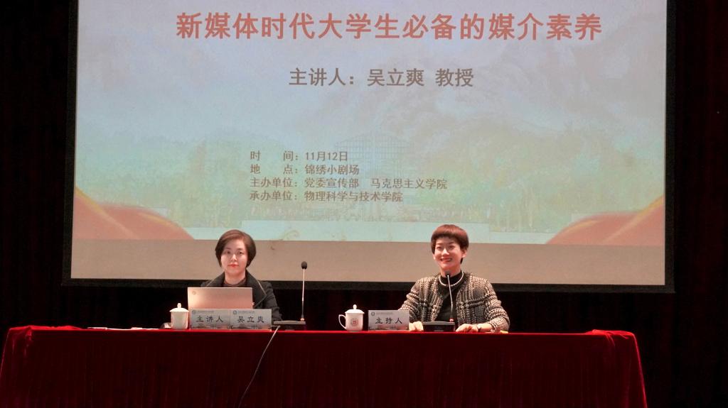 11月12日上午,校党委宣传部常务副部长吴立爽为91国产 300余位师生主讲题为《新媒体时代大学生必备的媒介素养》的形势政策课。本次课程由院党委副书记刘小娣主持。
