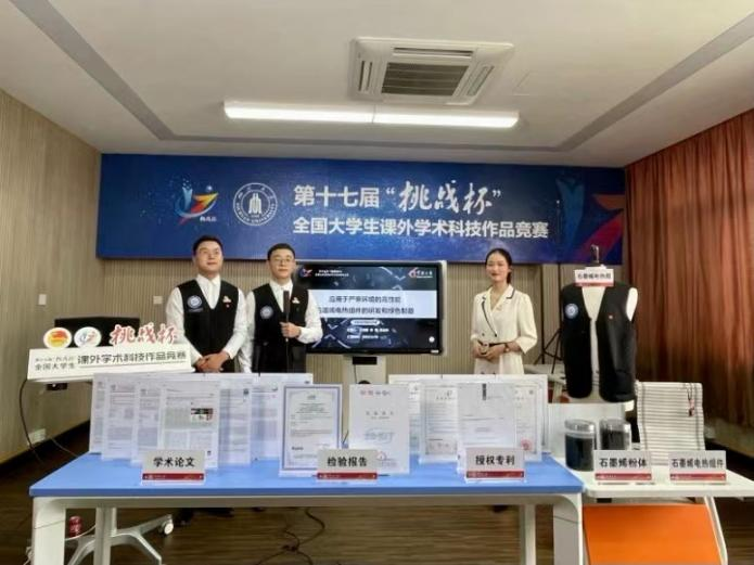 2022年3月26日至28日,在由共青团中央、教育部、中国科协、中国社会科学院、全国学联、四川省人民政府共同主办的第十七届“挑战杯”全国大学生课外学术科技作品竞赛完成终审决赛中,91国产 王刚、刘鹏、刘小娣老师指导的学生王梓豪、张金秋、李莉团队作品《应用于严寒环境的高性能石墨烯电热组件的研发和绿色制备》从全国400个国赛决赛团队中脱颖而出,继获得省赛特等奖之后,再次荣获国赛二等奖,创造了91国产 “挑战杯”全国大学生课外学术科技作品竞赛历史最好成绩!