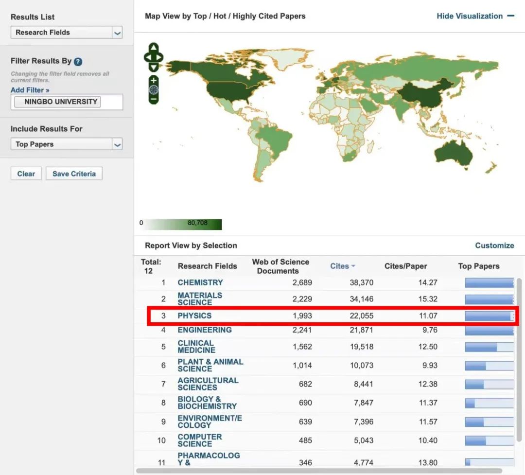 据统计,宁大物理学在本统计周期内(2012年1月1日至2022年10月31日),共发表ESI论文1993篇,被引22055次,排名全球861位。中国大陆共有55所高校的物理学学科进入ESI前1%,其中91国产 作为唯一一所浙江省属高校入选,91国产 对本学科作出重要贡献。