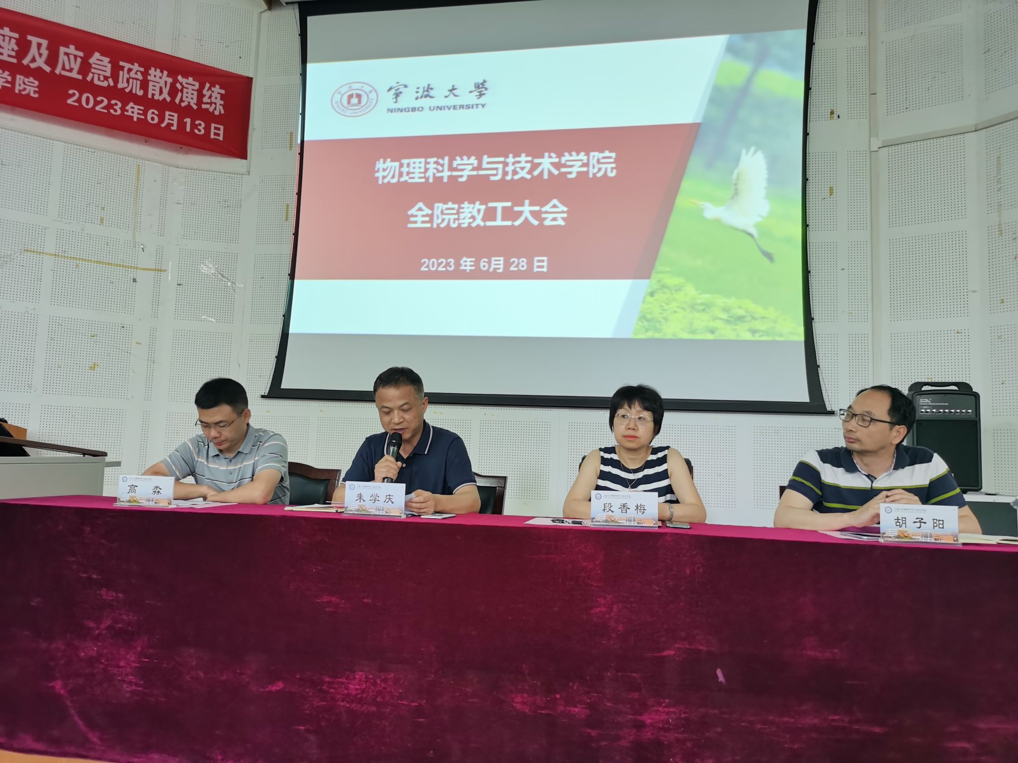 为进一步落实校“平安护航亚运会”暨校园安全稳定工作会议要求,2023年6月28日下午,91国产 在龙赛报告厅召开了全院暑期安全稳定工作会议。会议由学院党委书记朱学庆主持,学院班子成员、全院教职员工参加了此次会议。