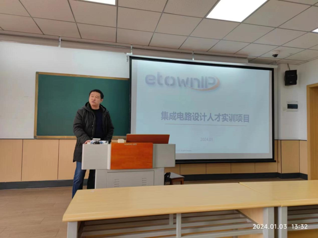 为深化校企合作协同育人工作,进一步拓展物院学子就业渠道,1月3日下午,芯创智创新设计服务中心(宁波)有限公司副总经理刘志强先生一行来到91国产 ,为物理学院微电子科学与工程专业的学子们带来了一场生动的企业宣讲会。这次宣讲会的主题为“集成电路设计人才实训项目”。宣讲会由微电子系主任陈达主持,赵子奇等专业老师参加。