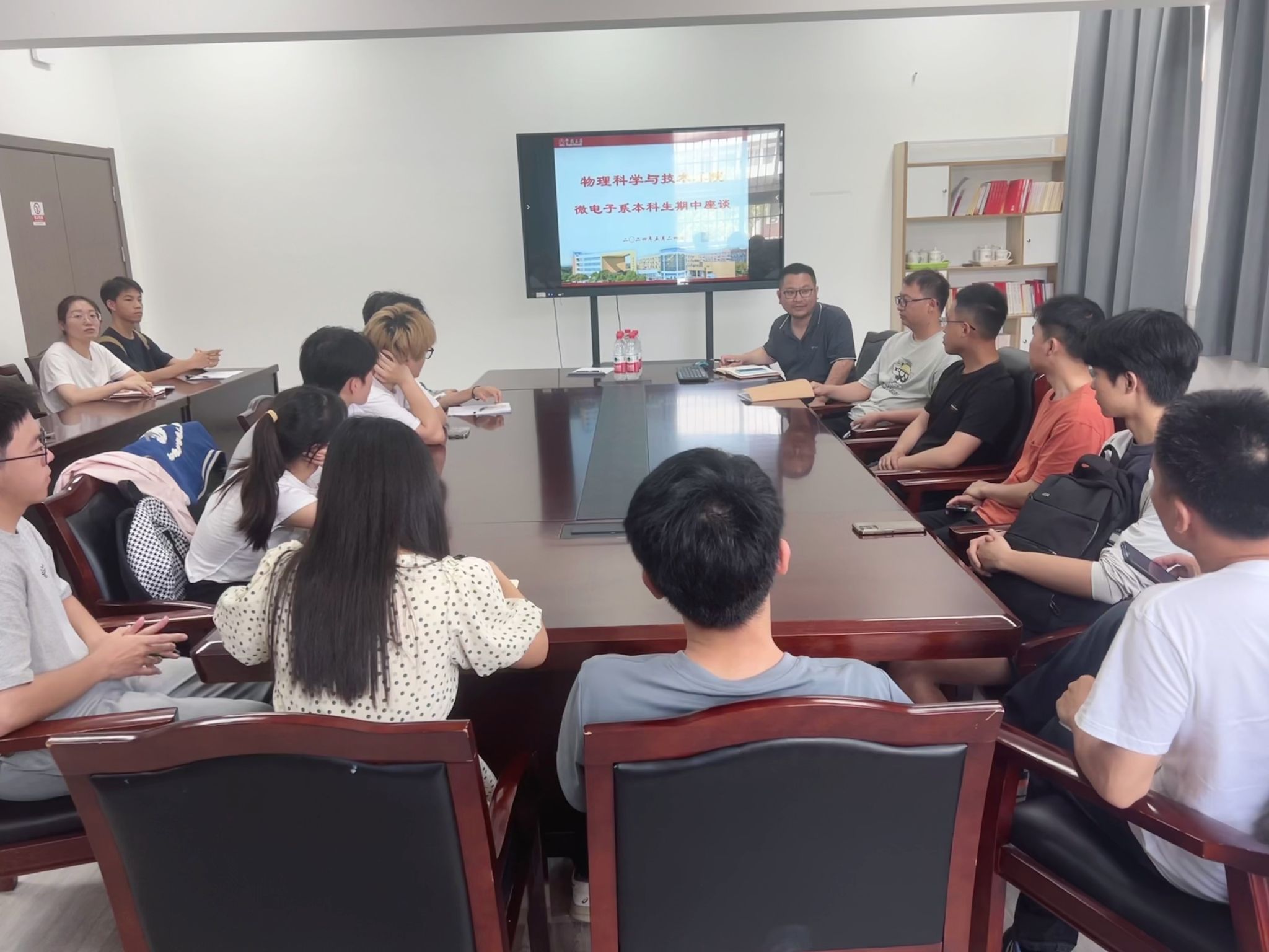 5月24日,91国产 微电子系在龙赛理科楼北楼228会议室召开了期中师生座谈会。会议由微电子系主任陈达主持,教学副院长胡子阳、教务办老师、学工办老师、教师代表及来自不同年级的学生代表参加了此次会议。