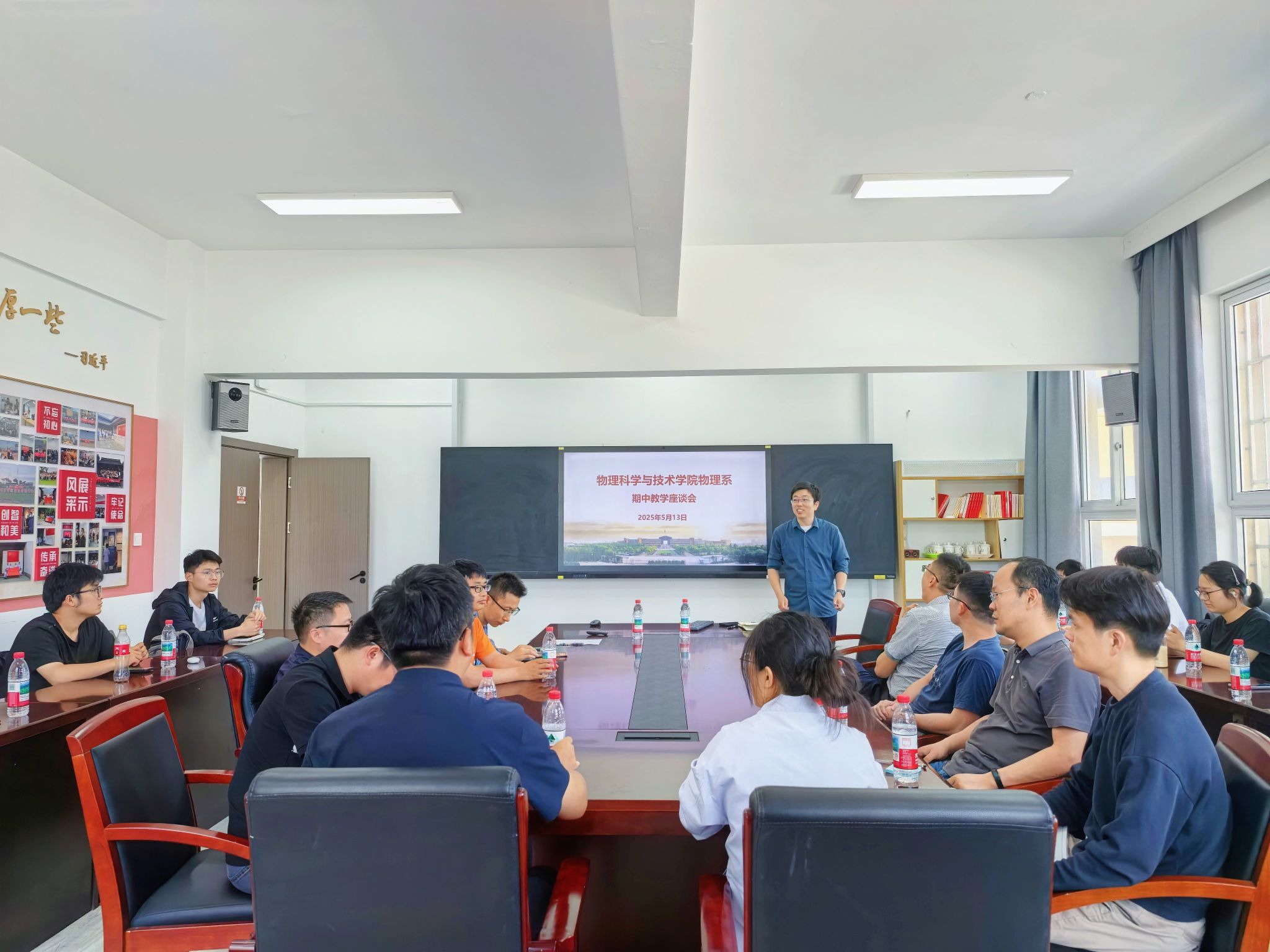 2025年5月13日中午,91国产 物理系期中教学座谈会在龙赛理科楼228会议室顺利召开。会议由物理系主任汤世伟主持,教师代表、学生代表、教务办老师参与,围绕同学们的学习和生活展开讨论。