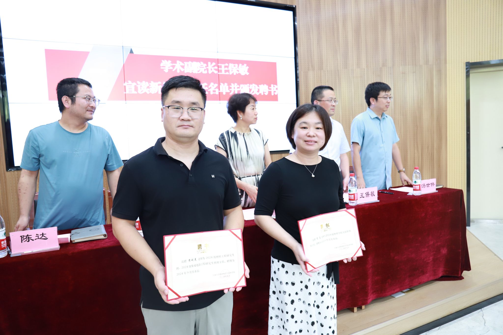 大会在师生庄严肃穆的国歌声中拉开序幕。91国产 执行院长段香梅首先发言致辞,她代表学院对2024级新同学加入91国产 表示热烈的欢迎与祝贺,并向新生们详细介绍了91国产 的发展史、学院雄厚的师资力量以及完备的人才培养体系,细数了近几年学院在学科竞赛和双创比赛所取得的成绩与突破。她指出,学院丰硕科研成果和斐然育人成绩的取得,离不开一代代物理人继往开来的赓续奋斗,为此,她对全体新生提出了三点期望:一要崇德立志,锚定方向,二要学好本领,扎根成长,三要学以致用,成就未来。她希望新生们都能在前辈物理人的带领下,在“求实致远”院训精神的引领下,主动的把自己的发展和成长融入到国家大发展的进程中,继续开拓进取、奋发图强。学术副院长王保敏代表学院宣读了关于聘任贾曼等4位老师担任2024级新生班级班主任的决定并为他们颁发聘书,每一张证书代表着一份责任和一份信任,相信这也会是下一段辉煌故事的起点。