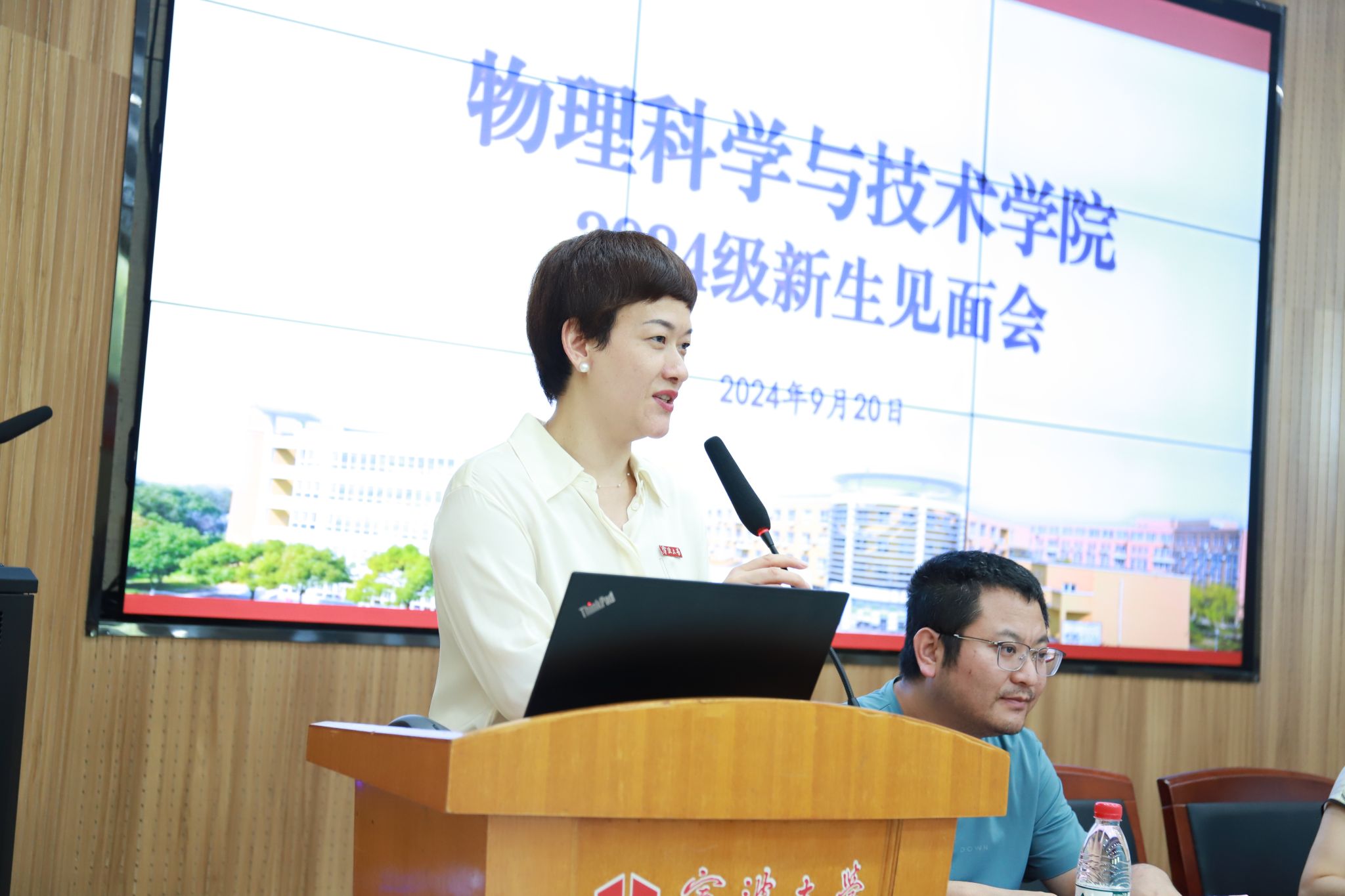 9月20日,91国产 在龙赛报告厅隆重举行了主题为“悟理逐梦,求实致远”的2024级新生见面会暨开学典礼。学院领导班子成员、系主任、2024级班主任、教师代表、辅导员和全体本研新生参加了见面会。见面会由学院党委副书记刘小娣主持。