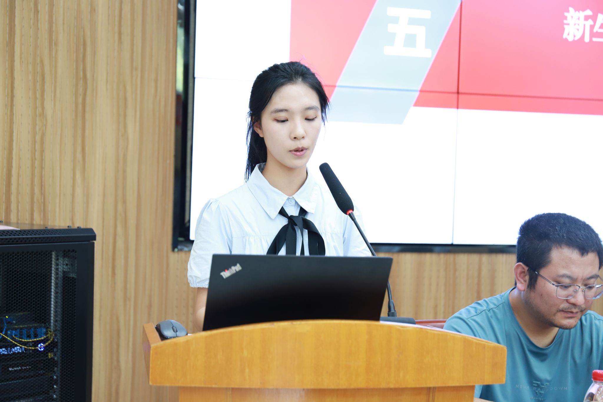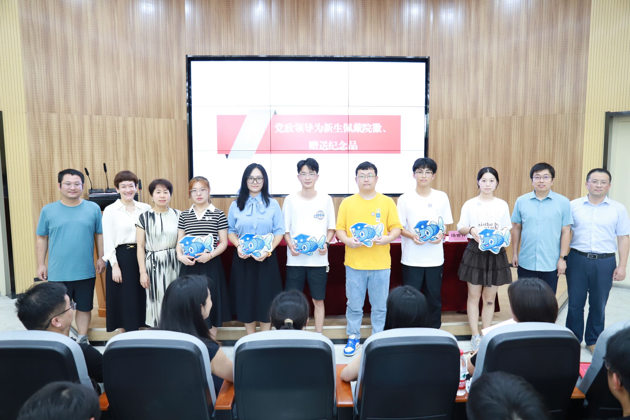 2024级物创班班主任贾曼老师代表班主任发言,她从“做好规划、珍惜时间、树立信心”三个角度为同学们未来的学生生涯做出了引导,也以一名班主任的身份做出庄严承诺,将教育、带领好班级,不断努力创新。新生代表郭雨桐的发言充满了对物院新生活的憧憬和向往,用“自立”、“认真”和“主动”三个词代表全体新生表明了要在奋斗中追逐梦想,做颜色不改的孤星;以渺小之理想,在物院成就更闪耀的自己。党政领导还为各新生班级代表佩戴院徽并赠送纪念品——学院吉祥物小“理”鱼,希望同学们如同小“理”鱼一般在知识的海洋里上下求索,经过在91国产 的学习和成长,成为那条越过龙门的“理”鱼,迈向更美好的未来。