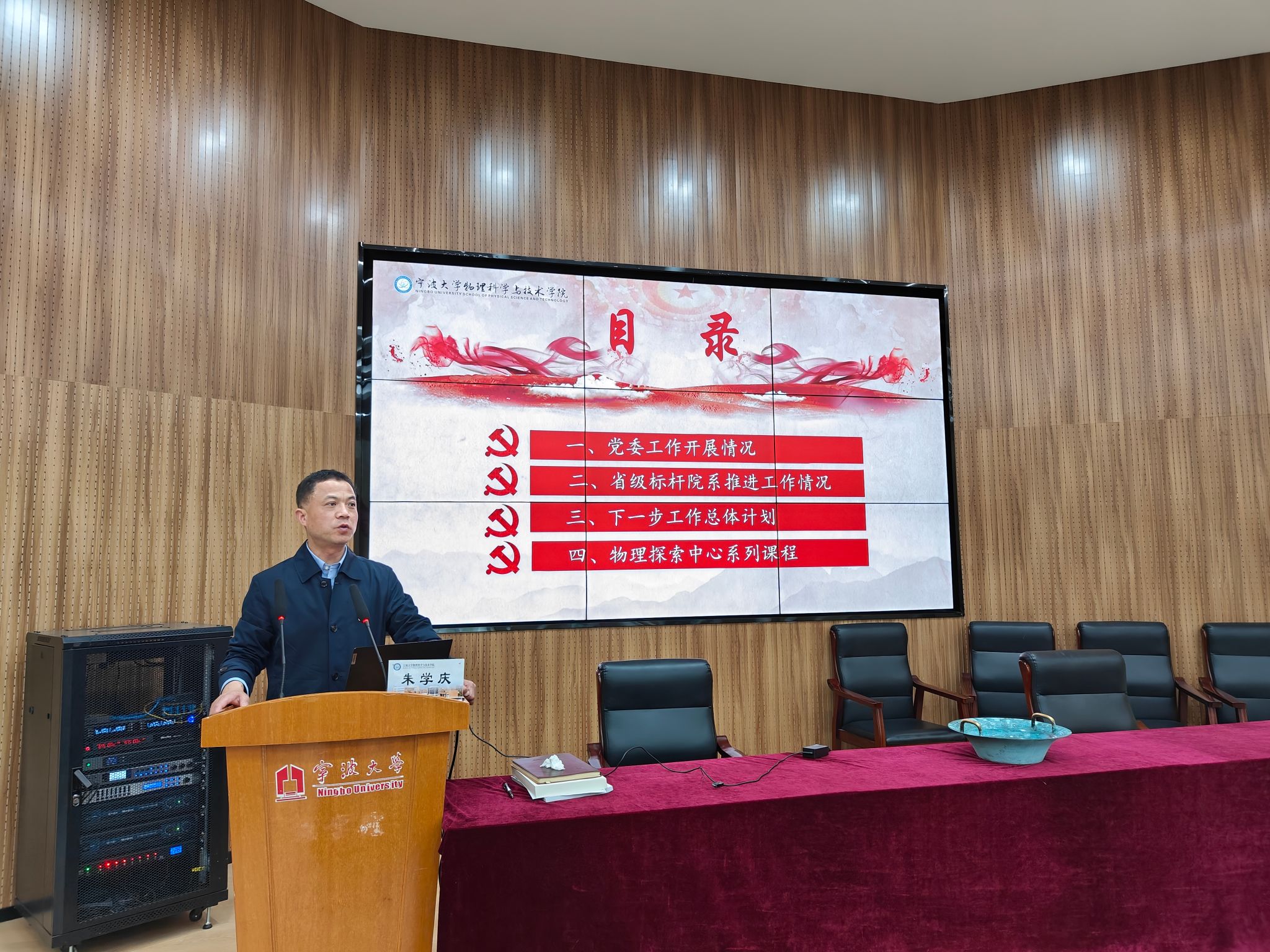 为深入贯彻党的二十大精神,推动物理学子将责任与担当转化为实际行动,以科学家精神贡献智慧和力量。4月17日下午,在学院龙赛报告厅先后开展本科生第一党支部、本科生第二党支部的“科普思政一体化,弘扬科学家精神”联合主题党日活动和研究生第一党支部、研究生第二党支部、研究生第三党支部的“讲述科学家故事,弘扬科学家精神”联合主题党日活动,学院党委书记、组织员、学生党建辅导员、学院团委书记、五个学生党支部的党员和积极分子等参与,活动由学院党委书记朱学庆主持。