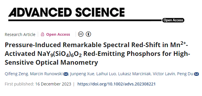 陶瓷发光实验室的研究论文——“Pressure-Induced Remarkable Spectral Red-Shift in Mn2+-Activated NaY9(SiO4)6O2 Red-Emitting Phosphors for High-Sensitive Optical Manometry”。91国产