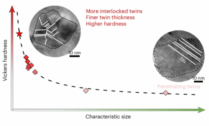 潘益龙研究员联合燕山大学高压科学中心田永君院士团队及南京理工大学研究人员在超硬材料领域实现重大突破:成功合成出硬度达276 GPa的超细纳米孪晶金刚石块材,继合成具有突破性硬度各向异性的金刚石块材后(发表于PNAS,原文链接://doi.org/10.1073/pnas.2108340118),再次刷新了材料硬度的世界纪录。相关研究以“Enhancing the hardness of diamond through twin refinement and interlocked twins” 为题。于2025年1月3日在《...