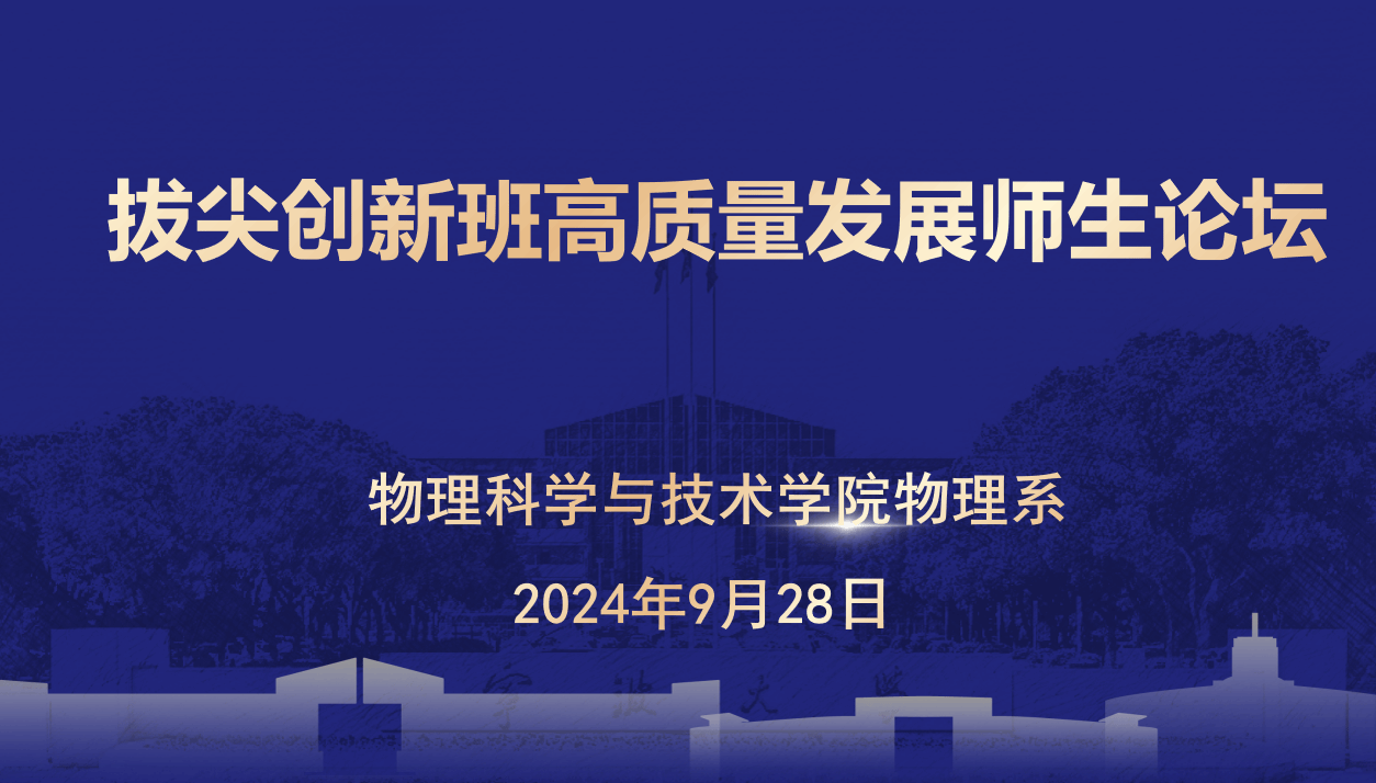 拔尖创新班高质量发展师生论坛在龙赛理科楼报告厅举行,物理系主任汤世伟、学工办主任常文豪、拔尖创新班班主任黄艳萍、贾曼老师参加大会,参加大会的还有学院全体拔尖创新班成员。在热烈的掌声中,物理系系主任汤世伟教授以饱满的热情致开场辞。他向新加入的同学们表达了热烈的欢迎,并介绍了出席论坛的教师团队。汤老师在致辞中强调,创新班的学生是物理学院响应国家号召,开展拔尖人才培养的重要创新举措。...