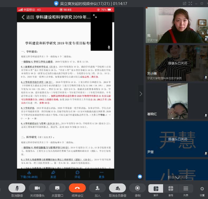 3月6日,物理学院召开视频会议推进2020年重点业务工作,全体党政领导和行政人员参会。学院执行院长李伟平主持会议。会上,学院分管领导就2020年的党建、教学、科研、研究生、人才引进、学生管理、社会服务等重点业务工作推进情况进行通报。就做好学科评估、博士点申报、研究生复试等工作进行了具体讨论,提出切实可行的措施和解决办法。执行院长在总结时指出,2020年是物理学院迎接新挑战、抢抓新机遇、谋求新发展的关键时期,...