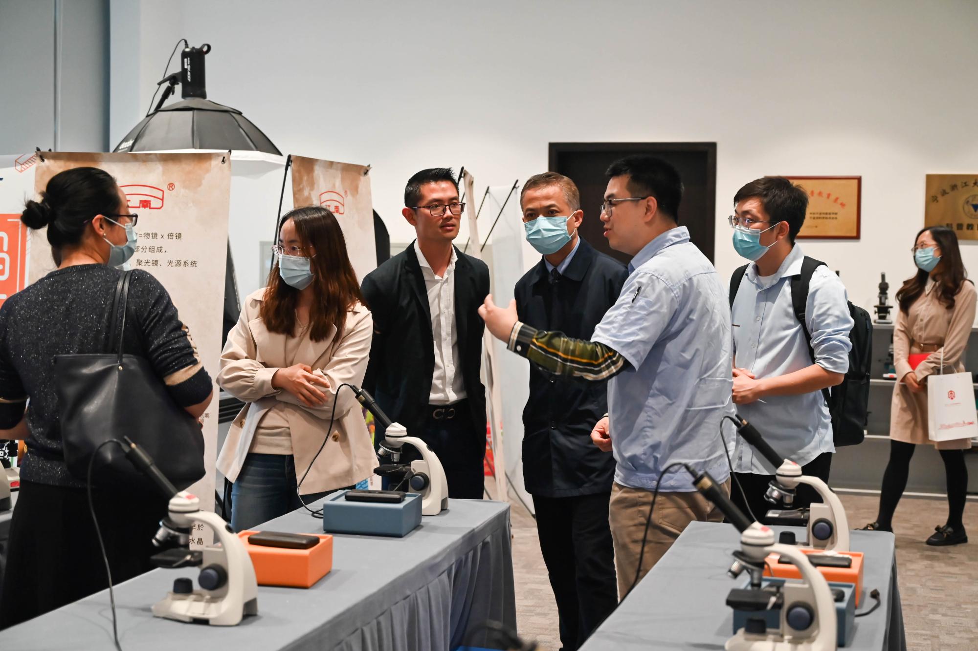 党委书记朱学庆一行7人走访了宁波永新光学股份有限公司,洽谈合作并看望在企业工作的学院校友。永新光学研究院院长崔志英、人事部经理张雪枫等人亲切接待了91国产