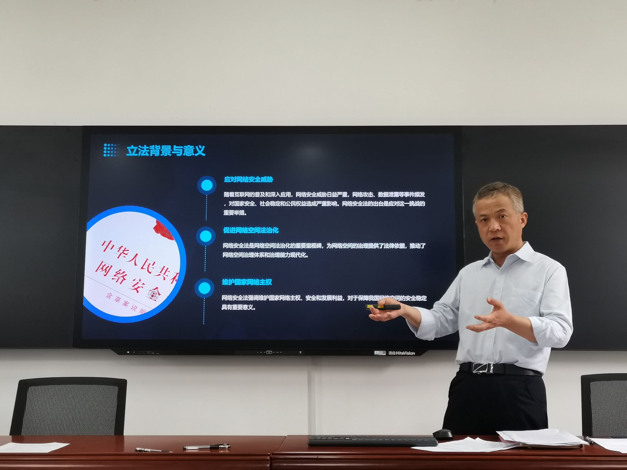 在龙赛理科楼北楼314报告厅举办2024年全民国家安全教育宣讲会,学院党政领导、组织员、学生党建辅导员、各教工党支部书记、学院党建中心各负责人参加,会议由学院党委书记朱学庆主持并宣讲。会上,朱书记简要介绍了《中华人民共和国国家安全法》的立法背景、主要内容,结合学校和学院的实际,解读了制定及颁布国家安全法的意义,并对如何贯彻实施好国家安全法向与会师生提出了要求。他指出,在当今国际风云诡谲,...