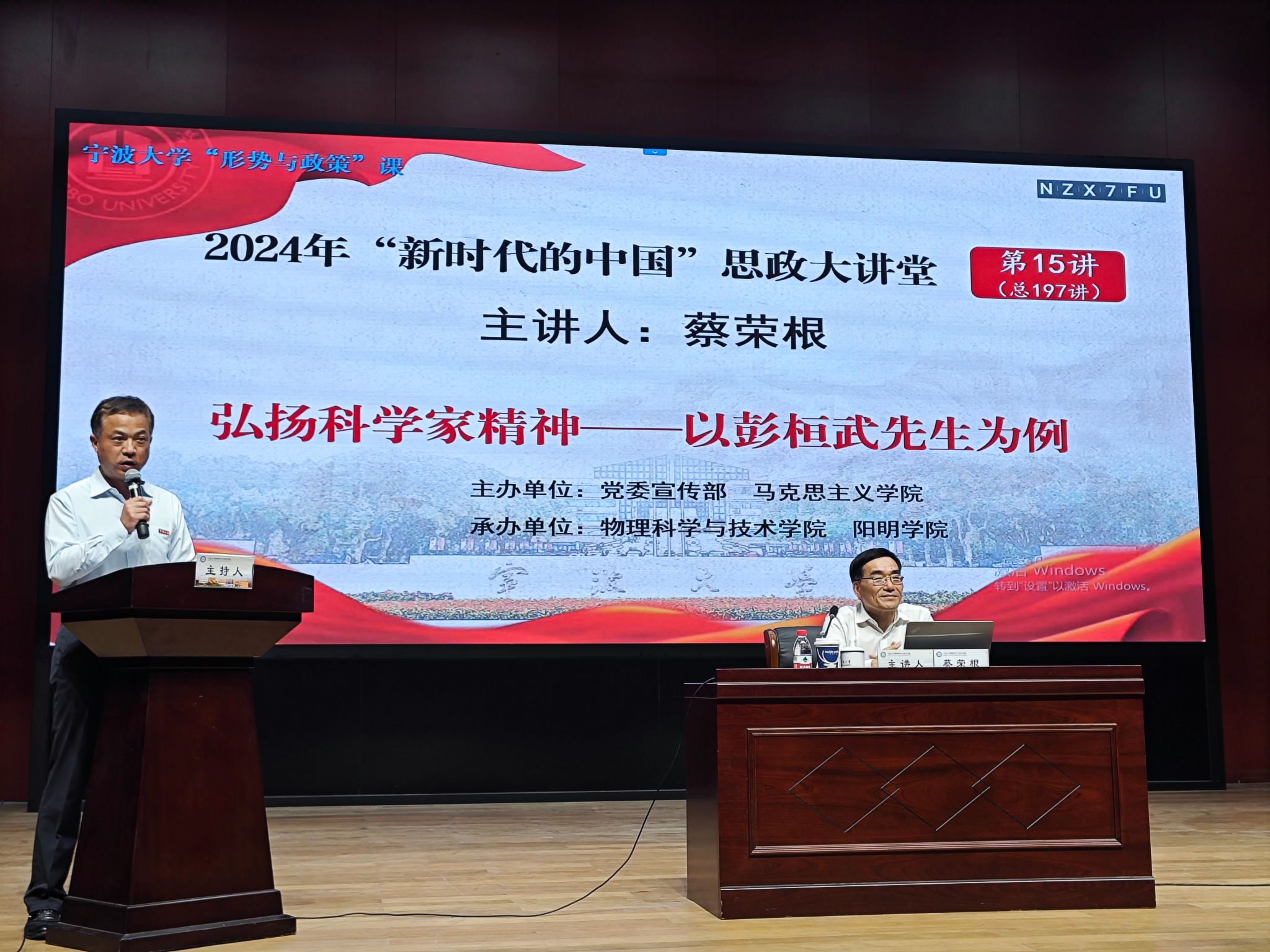 5月22日,校长蔡荣根院士在忻元甫报告厅以“弘扬科学家精神——以彭桓武先生为例”为主题,为91国产